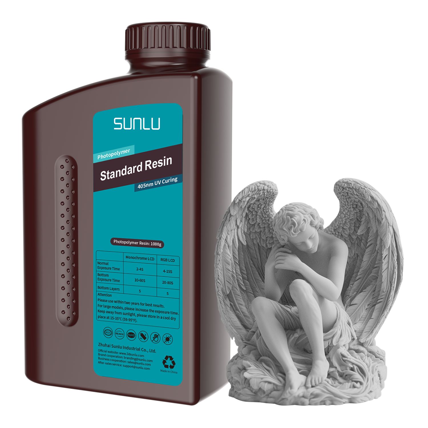 Leírás Kapcsolódó termékek Kérdése van? Vélemények SUNLU Standard Resin (gyanta) Gray Nettó tömeg: 1 kg/palack Viszkozitás (25°C): 100-350 mPa·s Sűrűség: 1,05-1,15 g/cm3 Hullámhossz: 395-405 nm Szakítószilárdság: 36 MPa Hajlítószilárdság: 40 MPa Szakadási nyúlás: 10% Keménység (D): 80-85 Zsugorodás: 7-9% 1. Kezdőknek és modellkézi nyomtatáshoz alkalmas; 2. Könnyen formázható, jó pontosságú, alacsony szagú, magas költségű teljesítményt nyújt Sunlu Standard Resin LCD, DLP és SLA 3D nyomtatókhoz, 3D nyomtatókban való használatra. A kikeményedéshez 405 nm-es (UV) LED/lézer fényforrás szükséges. Tárolási figyelmeztetések Tartsa távol a napfénytől, mivel UV-sugarakat tartalmaz, amelyek elnyelik a gyantát. Sötét helyen, 15-35°C közötti környezeti hőmérsékleten tárolandó. Minél alacsonyabb a hőmérséklet, annál nagyobb a gyanta viszkozitása. Használat: Használat előtt alaposan keverje össze. Ne használja a gyantát közvetlen napfényben, mert megkeményedik. Viseljen védőfelszerelést (kesztyűt és maszkot), és a gyantát jól szellőző helyen használja. Kerülje a bőrrel és szemmel való érintkezést, ne nyelje le. Ha a gyanta bőrrel érintkezik, sürgősen mossa le a területet bő vízzel. Irritáció esetén azonnal forduljon orvoshoz. A nyomtatást 20-30°C környezeti hőmérsékleten ajánlott végezni. A nyomtatott tárgyakat nagy tisztaságú alkohollal (ajánlott 95%-os) kell lemosni a gyantamaradványok eltávolítása érdekében. Ne keverje a használt gyantát a fel nem használt gyantával. Ne öntse a gyantát a nyomtatóból a fel nem használt gyantatartályba. A szennyeződés elkerülése érdekében ne hagyja a gyantát hosszú ideig a nyomtatóban. Ehhez a termékhez nincsenek további kapcsolódó termékek! Kérdése van? Forduljon hozzánk bizalommal!