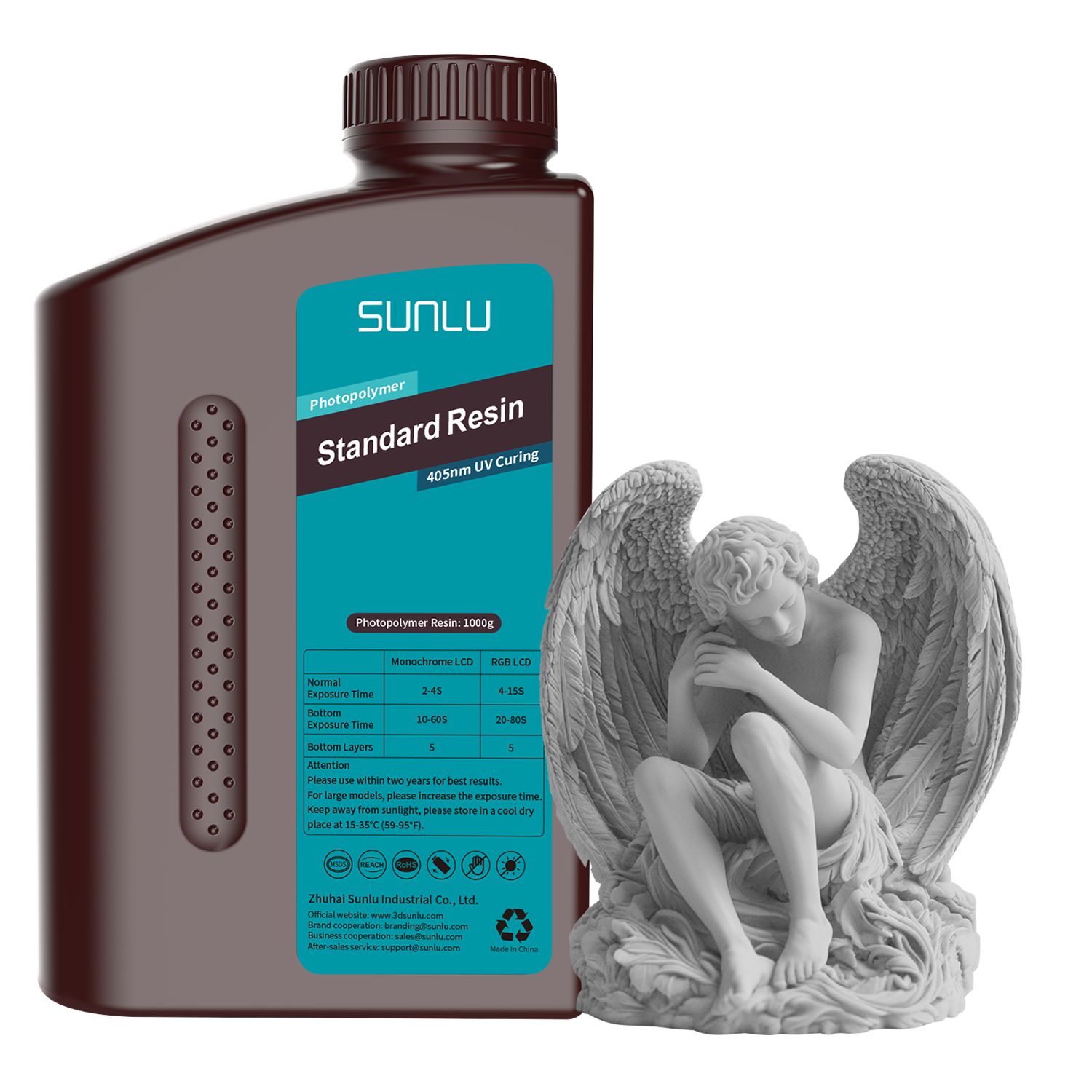Leírás Kapcsolódó termékek Kérdése van? Vélemények SUNLU Standard Resin (gyanta) Gray Nettó tömeg: 1 kg/palack Viszkozitás (25°C): 100-350 mPa·s Sűrűség: 1,05-1,15 g/cm3 Hullámhossz: 395-405 nm Szakítószilárdság: 36 MPa Hajlítószilárdság: 40 MPa Szakadási nyúlás: 10% Keménység (D): 80-85 Zsugorodás: 7-9% 1. Kezdőknek és modellkézi nyomtatáshoz alkalmas; 2. Könnyen formázható, jó pontosságú, alacsony szagú, magas költségű teljesítményt nyújt Sunlu Standard Resin LCD, DLP és SLA 3D nyomtatókhoz, 3D nyomtatókban való használatra. A kikeményedéshez 405 nm-es (UV) LED/lézer fényforrás szükséges. Tárolási figyelmeztetések Tartsa távol a napfénytől, mivel UV-sugarakat tartalmaz, amelyek elnyelik a gyantát. Sötét helyen, 15-35°C közötti környezeti hőmérsékleten tárolandó. Minél alacsonyabb a hőmérséklet, annál nagyobb a gyanta viszkozitása. Használat: Használat előtt alaposan keverje össze. Ne használja a gyantát közvetlen napfényben, mert megkeményedik. Viseljen védőfelszerelést (kesztyűt és maszkot), és a gyantát jól szellőző helyen használja. Kerülje a bőrrel és szemmel való érintkezést, ne nyelje le. Ha a gyanta bőrrel érintkezik, sürgősen mossa le a területet bő vízzel. Irritáció esetén azonnal forduljon orvoshoz. A nyomtatást 20-30°C környezeti hőmérsékleten ajánlott végezni. A nyomtatott tárgyakat nagy tisztaságú alkohollal (ajánlott 95%-os) kell lemosni a gyantamaradványok eltávolítása érdekében. Ne keverje a használt gyantát a fel nem használt gyantával. Ne öntse a gyantát a nyomtatóból a fel nem használt gyantatartályba. A szennyeződés elkerülése érdekében ne hagyja a gyantát hosszú ideig a nyomtatóban. Ehhez a termékhez nincsenek további kapcsolódó termékek! Kérdése van? Forduljon hozzánk bizalommal!